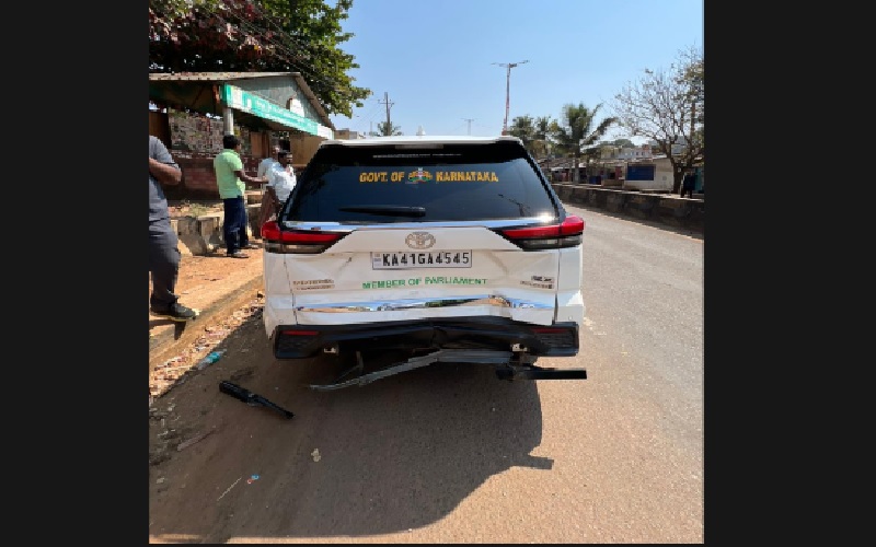 ಅಪಾಯದಿಂದ ಪಾರಾದ ಸಂಸದರು ಎಸ್ಕಾರ್ಟ್ ವಾಹನದಲ್ಲೇ ವಿಮಾನ ನಿಲ್ದಾಣಕ್ಕೆ ತೆರಳಿ ಪ್ರಯಾಣ ಮುಂದುವರಿಸಿದ್ದಾರೆ.