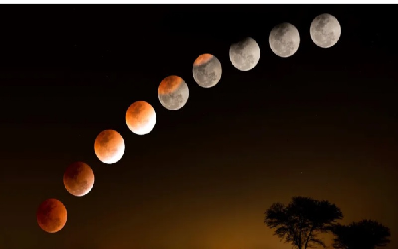 ಸ್ಪರ್ಶಕಾಲ: 8.58 ನಿಮಿಷ, ಮಧ್ಯಮ: 9.57 (ಚಂದ್ರನ ಗೋಲದ ಒಂದು ಪಾರ್ಶ್ವ ನಿಧಾನವಾಗಿ ಬಣ್ಣ ಬದಲಾಯಿಸುವ ಪ್ರಕ್ರಿಯೆ ಆರಂಭ), ರಾತ್ರಿ 11 ಗಂಟೆಯಿಂದ 12:22 ನಿಮಿಷದ ವರೆಗೆ ಸಂಪೂರ್ಣ ಚಂದ್ರಗ್ರಹಣದ ದೃಶ್ಯ ಗೋಚರ. ಗ್ರಹಣ ಮೋಕ್ಷ ಸೆಪ್ಟೆಂಬರ್ 8 ರಂದು 2:25 ನಿಮಿಷ. 5 ಗಂಟೆ 27 ನಿಮಿಷಗಳ ಸುದೀರ್ಘ ಗ್ರಹಣವನ್ನು ಬರಿ ಕಣ್ಣಿನಿಂದಲೇ ನೋಡಬಹುದು.