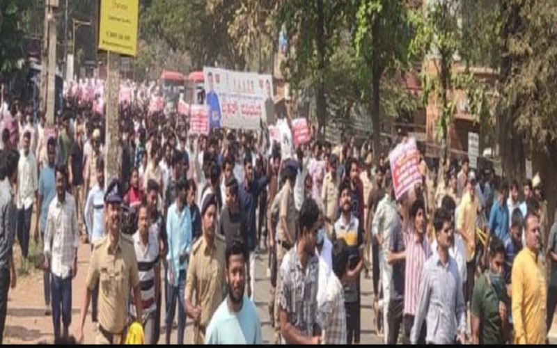 ಉದ್ಯೋಗ ನೇಮಕಾತಿ ಪ್ರಕ್ರಿಯೆ ವೇಗಗೊಳಿಸಬೇಕು, ಖಾಲಿ ಹುದ್ದೆಗಳನ್ನು ಭರ್ತಿ ಮಾಡಬೇಕು ಎಂಬ ಬೇಡಿಕೆಗಳನ್ನು ಮುಂದಿಟ್ಟುಕೊಂಡು ಧಾರವಾಡ ನಗರದಲ್ಲಿ ಆರಂಭಗೊಂಡಿರುವ ಉದ್ಯೋಗಾಕಾಂಕ್ಷಿಗಳ ಹೋರಾಟ ತೀವ್ರ ಸ್ವರೂಪ ಪಡೆದಿದೆ. ಇಲ್ಲಿನ ಶ್ರೀನಗರ ಪ್ರದೇಶದಿಂದ ಆರಂಭವಾದ ಮೆರವಣಿಗೆಯಲ್ಲಿ ಸಾವಿರಾರು ಸಂಖ್ಯೆಯಲ್ಲಿ ಯುವಕರು ಜಮಾವಣೆಗೊಂಡು ಸರ್ಕಾರದ ವಿರುದ್ಧ