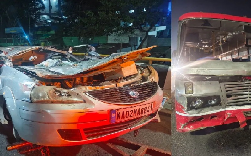 ನೆಲಮಂಗಲ ಜಿಂದಾಲ್ ಬಳಿ ಕೆಎಸ್ಸಾರ್ಟಿಸಿ ಬಸ್ ಮತ್ತು ಕಾರು ಅಪಘಾತ ನಡೆದಿದ್ದು, ಕಾರಿನಲ್ಲಿದ್ದ ಐವರು ಮೃತಪಟ್ಟಿದ್ದಾರೆ.
