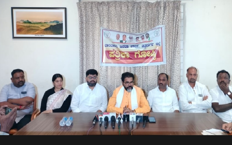 ಚಿತ್ರದುರ್ಗ ನಗರದ ಪ್ರವಾಸಿ ಮಂದಿರದಲ್ಲಿ ಮಾಧ್ಯಮಗಳ ಜೊತೆ ಮಾತನಾಡಿದರು. ಇವತ್ತು ತಾವು ಸಂವಿಧಾನ ರಕ್ಷಿಸುವುದಾಗಿ ಭಾಷಣ ಹೊಡೆಯುತ್ತಾರೆ ಎಂದು ಟೀಕಿಸಿದರು. ನೀವು ಹೇಗೆ ರಕ್ಷಿಸುತ್ತೀರಿ? ರಕ್ಷಿಸಲು ಸಂವಿಧಾನ ಎಲ್ಲಿ ತೊಂದರೆಯಲ್ಲಿ ಸಿಲುಕಿದೆ ಎಂದು ಪ್ರಶ್ನೆಯನ್ನು ಮುಂದಿಟ್ಟರು. ಯಾರು ರಕ್ಷಣೆ ಮಾಡುವುದಾಗಿ ಹೇಳುತ್ತಾರೋ ಅವರೇ ಭಕ್ಷಕರು. ಕಾಂಗ್ರೆಸ್ಸಿಗೆ ಸರಿಯಾದ ನಿಲುವಿಲ್ಲ ಎಂದು ಟೀಕಿಸಿದರು. ಆ ಪಕ್ಷಕ್ಕೆ ಈ ದೇಶದಲ್ಲಿ ಉಳಿಗಾಲವೂ ಇಲ್ಲ ಎಂದು ನುಡಿದರು.