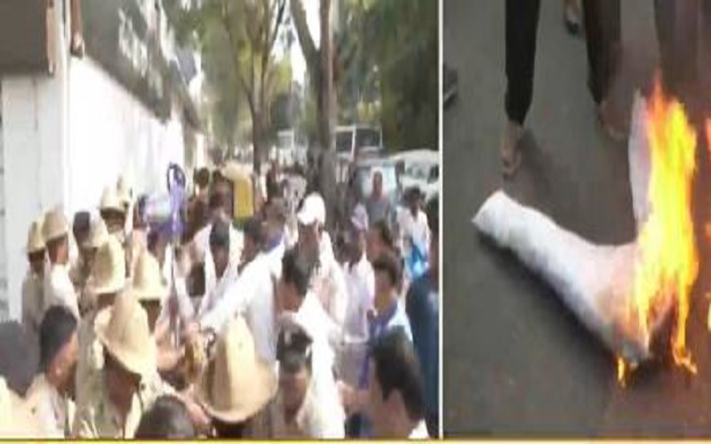 ಪ್ರತಿಭಟನಾಕಾರರು ಅಮಿತ್ ಶಾ ಅವರ ಪ್ರತಿಕೃತಿ ದಹಿಸಿ ಆಕ್ರೋಶ ವ್ಯಕ್ತಪಡಿಸಿದರು. ಆರೆಸ್ಸೆಸ್ ಕಚೇರಿಗೆ ಮುತ್ತಿಗೆ ಹಾಕಲಯ ಯತ್ನಿಸಿದಾಗ ಪ್ರತಿಭಟನಾಕಾ ರರನ್ನು ಪೊಲೀಸರು ತಡೆದರು. ಈ ವೇಳೆ ಲಕ್ಷ್ಮಣ್ ಮತ್ತು ಪೊಲೀಸರ ಮಧ್ಯೆ ತೀವ್ರ ವಾಗ್ವಾದ ನಡೆಯಿತು.
