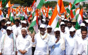 ಪಹಲ್ಗಾಂನಲ್ಲಿ ಉಗ್ರರು ನಡೆಸಿದ ದಾಳಿಗೆ ಪ್ರತೀಕಾರವಾಗಿ ಆಪರೇಷನ್ ಸಿಂಧೂರ ಕಾರ್ಯಾಚರಣೆ ನಡೆಸುತ್ತಿರುವ ಭಾರತೀಯ ಸೇನೆಗೆ ಬೆಂಬಲ ವ್ಯಕ್ತಪಡಿಸಿ ಬೆಂಗಳೂರಿನ ಕೆ ಆರ್ ಸರ್ಕಲ್ ನಿಂದ ಮಿನ್ಸ್ಕ್ ಚೌಕದವರೆಗೆ ಸಿಎಂ ಸಿದ್ದರಾಮಯ್ಯ ಹಾಗೂ ಡಿಸಿಎಂ ಡಿ ಕೆ ಶಿವಕುಮಾರ್ ನೇತೃತ್ವದಲ್ಲಿ ತಿರಂಗಾ ಯಾತ್ರೆ