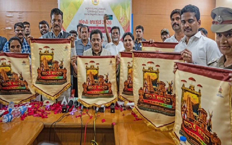 ಹೊಸಪೇಟೆ ಅಮರಾವತಿ ಪ್ರವಾಸಿ ಮಂದಿರದಲ್ಲಿ ಹಂಪಿ ಉತ್ಸವ-2026 ರ ಲಾಂಛನ ಬಿಡುಗಡೆ ಮಾಡಿ ಮಾತನಾಡಿ ಹಂಪಿ ಉತ್ಸವದ ಸಿದ್ಧತೆಗಳ ಕುರಿತು ಪ್ರಮುಖ ಮಾಹಿತಿಗಳನ್ನು ಹಂಚಿಕೊಂಡರು.