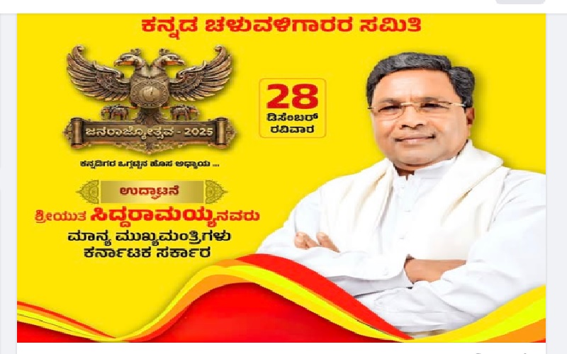 ಡಿಸೆಂಬರ್ 28 ರಂದು ಜನರಾಜ್ಯೋತ್ಸವವನ್ನು ಮುಖ್ಯಮಂತ್ರಿ ಸಿದ್ದರಾಮಯ್ಯ ಉದ್ಘಾಟಿಸಲಿದ್ದಾರೆ. ಬೆಂಗಳೂರಿನ ಅರಮನೆ ಮೈದಾನದ ಗಾಯತ್ರಿ ವಿಹಾರ ಗ್ರ್ಯಾಂಡ್ನಲ್ಲಿ ಮಧ್ಯಾಹ್ನ ಮೂರು