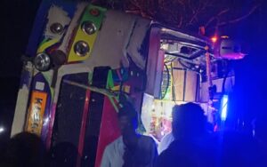 ನಿಶ್ಚಿತಾರ್ಥ ಮುಗಿಸಿ ವಾಪಸಾಗುತ್ತಿದ್ದಾಗ ಹನೂರಿನಲ್ಲಿ ಬಸ್ ಪಲ್ಟಿಯಾಗಿ ವ್ಯಕ್ತಿ ಸಾವು