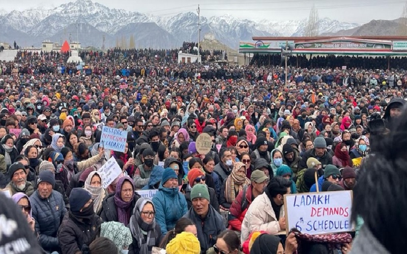 ಲಡಾಖ್ ಅಪೆಕ್ಸ್ ಬಾಡಿ ನೇತೃತ್ವದಲ್ಲಿ ನಡೆದ ಪ್ರತಿಭಟನೆಯಲ್ಲಿ ಪ್ರತಿಭಟನಾಕಾರರು ಪೊಲೀಸರೊಂದಿಗೆ ಘರ್ಷಣೆ ನಡೆಸಿ ಬಿಜೆಪಿ ಕಚೇರಿಗೆ ಬೆಂಕಿ ಹಚ್ಚಿದ್ದಾರೆ. ಹಲವು ವಾಹನಗಳು ಸುಟ್ಟಿದ್ದು, ಪರಿಸ್ಥಿತಿ ನಿಯಂತ್ರಿಸಲು ಪೊಲೀಸರು ಲಾಠಿ ಪ್ರಹಾರ ನಡೆಸಿ ಅಶ್ರುವಾಯು ಶೆಲ್ಗಳನ್ನು ಸಿಡಿಸಿದ್ದಾರೆ.