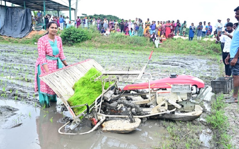 ಮಹಿಳೆಯರೂ ಯಾಂತ್ರೀಕೃತವಾಗಿ ಭತ್ತ ನಾಟಿ ಮಾಡಲು ಸಾಧ್ಯ ಎಂಬುದನ್ನು ತೋರಿಸಿಕೊಡುವುದಕ್ಕಾಗಿ ಮಂಡ್ಯ ಜಿಲ್ಲಾ ಪಂಚಾಯತ್ ಸಿಇಒ ನಂದಿನಿ ಕೆ.ಆರ್. ಸ್ವತಃ ಯಾಂತ್ರೀಕೃತ ವಿಧಾನದ ಮೂಲಕ ಭತ್ತ ನಾಟಿ ಮಾಡಿದರು.