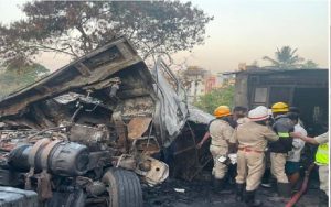 ಗೂಗಲ್ ಮ್ಯಾಪ್ ತೋರಿಸಿದಂತೆ ಸಂಚರಿಸಿದ ಲಾರಿ ಮನೆ ಮುಂದೆ ನಿಂತಿದ್ದ ಕಾರಿಗೆ ಡಿಕ್ಕಿ: ಕಾರೊಳಗಿದ್ದ ಚಾಲಕ ಸಜೀವ ದಹನ