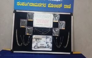 ಬೆಂಗಳೂರಿನ ಸಂಪಂಗಿ ರಾಮನಗರ ಪೊಲೀಸರು ಮನೆಗಳ್ಳತನ ಮಾಡುತ್ತಿದ್ದ ಆರೋಪಿಗಳನ್ನು ಬಂಧಿಸಿ, 40 ಲಕ್ಷ ಮೌಲ್ಯದ 384 ಗ್ರಾಂ ಚಿನ್ನಾಭರಣ ,107 ಗ್ರಾಂ ಬೆಳ್ಳಿ ,ಒಂದು ಕಾರು,2 ಬೈಕ್ ವಶಕ್ಕೆ ಪಡೆದಿದ್ದಾರೆ. ಅಶೋಕ್ ಅಲಿಯಾಸ್ ಆ್ಯಪಲ್ ,ರೇಣುಕಾ ಪ್ರಸಾದ್ ಬಂಧಿತ ಆರೋಪಿಗಳು. ಬ್ಯಾಡರಹಳ್ಳಿ