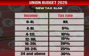12 ಲಕ್ಷ ರೂಪಾಯಿವರೆಗೂ ಆದಾಯ ತೆರಿಗೆ ಇಲ್ಲ, 4 ಲಕ್ಷದಿಂದ 8 ಲಕ್ಷದವರೆಗೆ ಶೇ.5ರಷ್ಟು ತೆರಿಗೆ 8 ಲಕ್ಷದಿಂದ 11 ಲಕ್ಷದವರೆಗೆ ಶೇ.10, 12 ಲಕ್ಷದಿಂದ 15 ಲಕ್ಷದವರೆಗೆ ಶೇ.15, 15 ಲಕ್ಷದಿಂದ 20 ಲಕ್ಷದವರೆಗೆ ಶೇ.20 ತೆರಿಗೆ, 20 ಲಕ್ಷದಿಂದ 24 ಲಕ್ಷದರೆಗೆ ಶೇ.25ರಷ್ಟು ತೆರಿಗೆ, 24 ಲಕ್ಷ ಮೇಲ್ಪಟ್ಟ ಆದಾಯಕ್ಕೆ ಶೇ.30ರಷ್ಟು ತೆರಿಗೆ ವಿಧಿಸಲಾ ಗುವುದು ಎಂದು ತಿಳಿಸಿದ್ದಾರೆ.