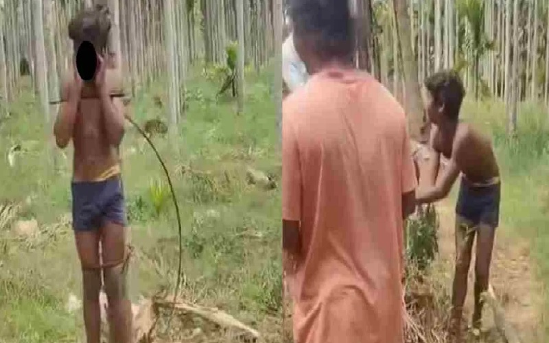 ಕಳ್ಳತನ ಮಾಡಿದ್ದಲ್ಲದೆ ಅಸಭ್ಯ ವರ್ತನೆ ತೋರಿದ್ದಾರೆಂದು ಆರೋಪಿಸಿ ಇಬ್ಬರು ಬಾಲಕರನ್ನು ಅಡಿಕೆ ಮರಕ್ಕೆ ಕಟ್ಟಿ ಹಲ್ಲೆ ಮಾಡಿ, ಗುಪ್ತಾಂಗಗಳಿಗೆ ಕೆಂಪು ಇರುವೆ ಬಿಟ್ಟು ಚಿತ್ರಹಿಂಸೆ ನೀಡಿರುವ ಅಮಾನವೀಯ ಘಟನೆ ದಾವಣಗೆರೆಯಲ್ಲಿ ನಡೆದಿರುವುದು ಬಹಿರಂಗಗೊಂಡಿದೆ. ಚನ್ನಗಿರಿ ತಾಲೂಕಿನ ನಲ್ಲೂರ ಬಳಿ ಇರುವ ಅಸ್ತಾಪನಹಳ್ಳಿಯಲ್ಲಿ ಏಪ್ರಿಲ್ 4ರಂದು ಘಟನೆ ನಡೆದಿದ್ದು, ಚಿತ್ರಹಿಂಸೆ ನೀಡಿರುವ ವಿಡಿಯೋ ವೈರಲ್ ಆಗಿದೆ. ಸುದ್ದಿವಾಹಿನಿಯೊಂದು ಈ ವಿಷಯ ಪ್ರಸಾರ ಮಾಡುತ್ತಿದ್ದಂತೆ ಪೊಲೀಸರು 9 ಜನರ ವಿರುದ್ಧ ಎಫ್ಐಆರ್ ದಾಖಲಿಸಿದ್ದು,
