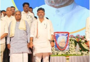 ಬೆಳಗಾವಿ: ಮಾಜಿ ಪ್ರಧಾನಿ ಮನಮೋಹನ್ ಸಿಂಗ್ ಅವರ ನಿಧನದ ಹಿನ್ನೆಲೆಯಲ್ಲಿ ಬೆಳಗಾವಿಯಲ್ಲಿ ಶುಕ್ರವಾರ ನಡೆಯಬೇಕಿದ್ದ ಜೈ ಬಾಪು, ಜೈ ಭೀಮ್, ಜೈ ಸಂವಿಧಾನ ಸಮಾವೇಶ ರದ್ದು ಮಾಡಲಾಗಿದೆ ಎಂದು ಡಿಸಿಎಂ ಡಿ.ಕೆ.ಶಿವಕುಮಾರ್ ತಿಳಿಸಿದರು. ಬೆಳಗಾವಿಯ ಸರ್ಕಿಟ್ ಹೌಸ್ ಅಲ್ಲಿ ಗುರುವಾರ ರಾತ್ರಿ