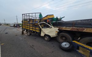 ಚಿತ್ರದುರ್ಗದ ಹಿರಿಯೂರು ತಾಲೂಕಿನ ಇಂಡಸ್ ಕಟ್ಟೆಯಲ್ಲಿ ಕಬ್ಬಿಣ ತುಂಬಿದ ಲಾರಿಗೆ ಹಿಂಬದಿಯಿಂದ ಕೋಳಿ ತುಂಬಿದ ಬುಲೆರೊ ವಾಹನ ಡಿಕ್ಕಿಯಾಗಿ ಇಬ್ಬರು ಸ್ಥಳದಲ್ಲೇ ಮೃತಪಟ್ಟಿದ್ದಾರೆ. ತುಮಕೂರಿನ ತಿಪಟೂರು ನಿವಾಸಿಗಳಾದ ಚಂದನ್ ಗೌಡ( 22), ಕುಮಾರ್ (17) ಮೃತಪಟ್ಟವರು. ಬುಲೆರೊ ಚಾಲಕನ ಅತಿ ವೇಗ